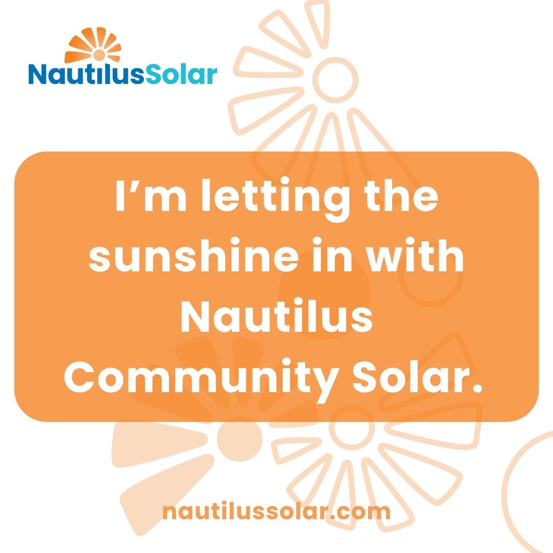 "I'm letting the sunshine in with Nautilus Community Solar. Accessing clean, local energy at an affordable price has never been easier."